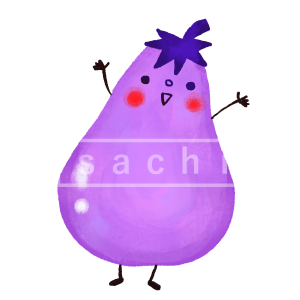 かわいいなすびのイラストです。食べ物関係、お店、保育園や幼稚園など資料やお便りにお使いください。(野菜やさいベジタブル)